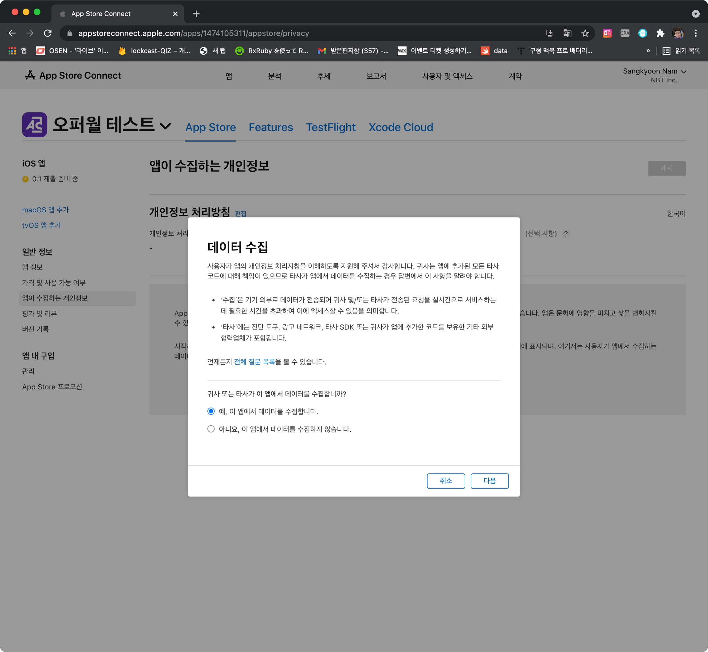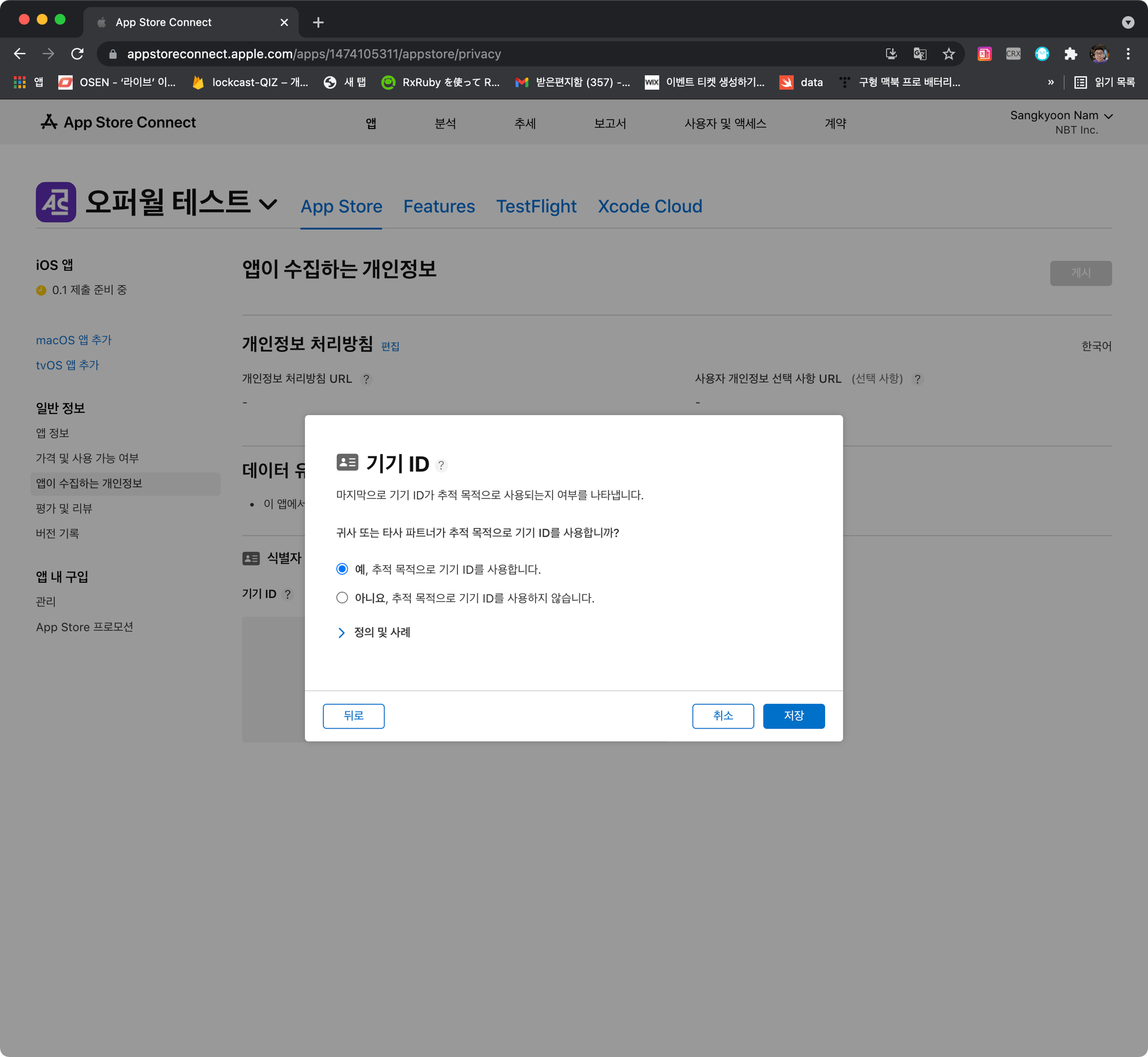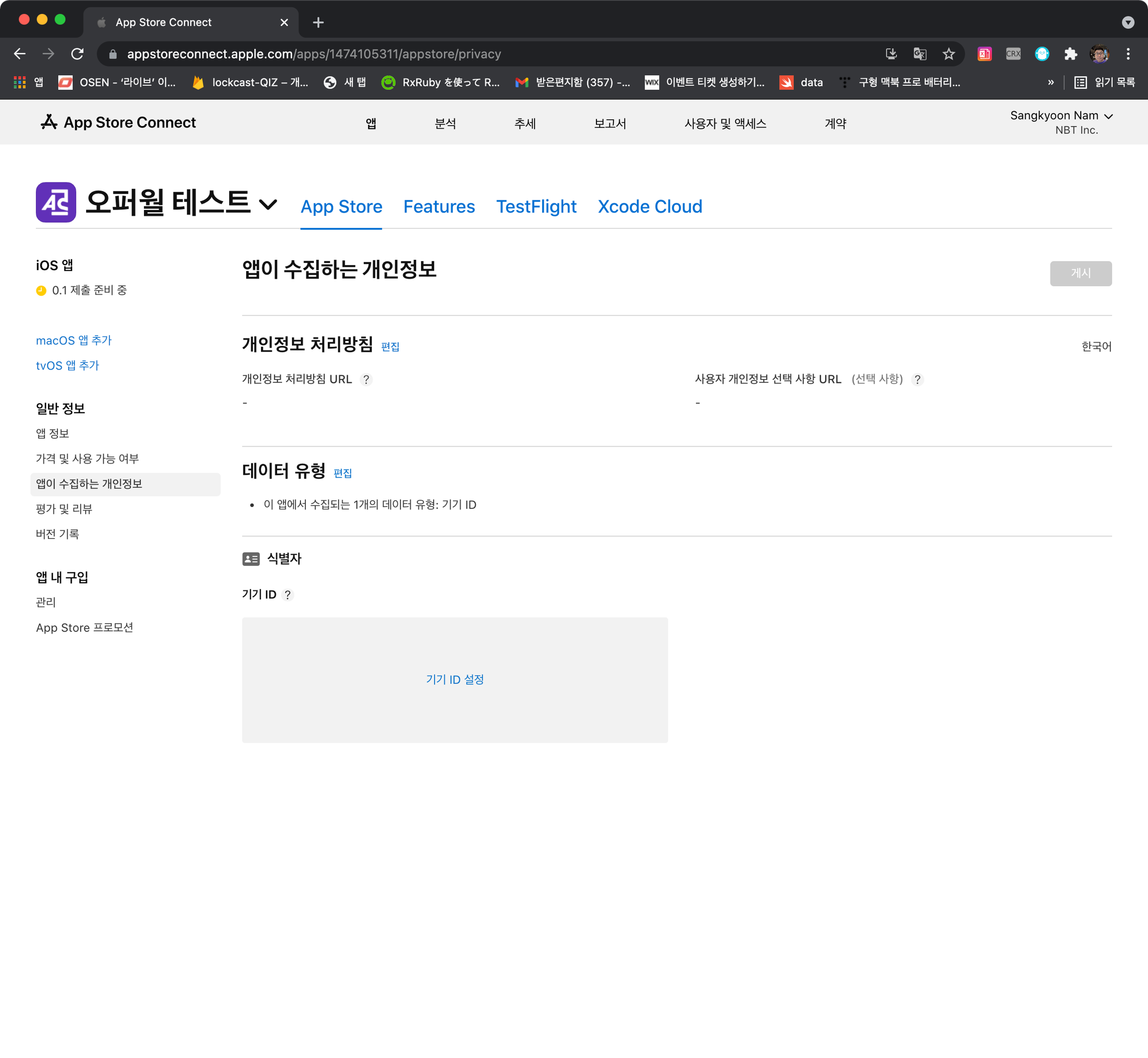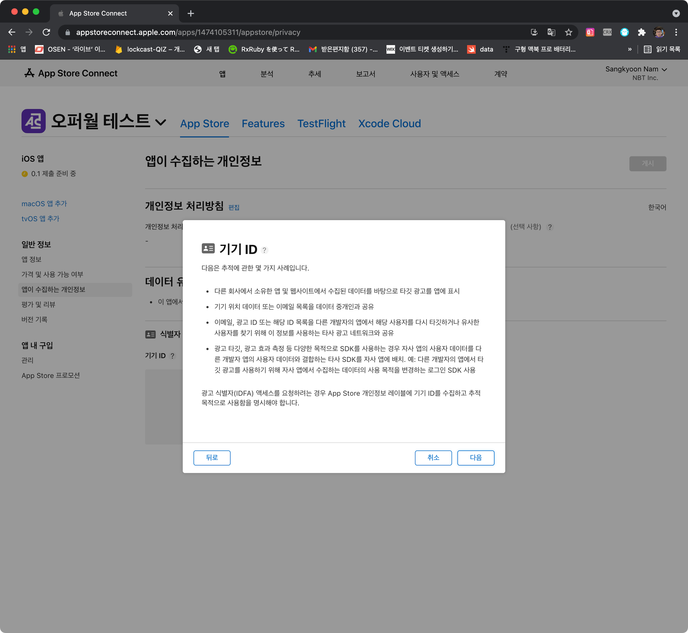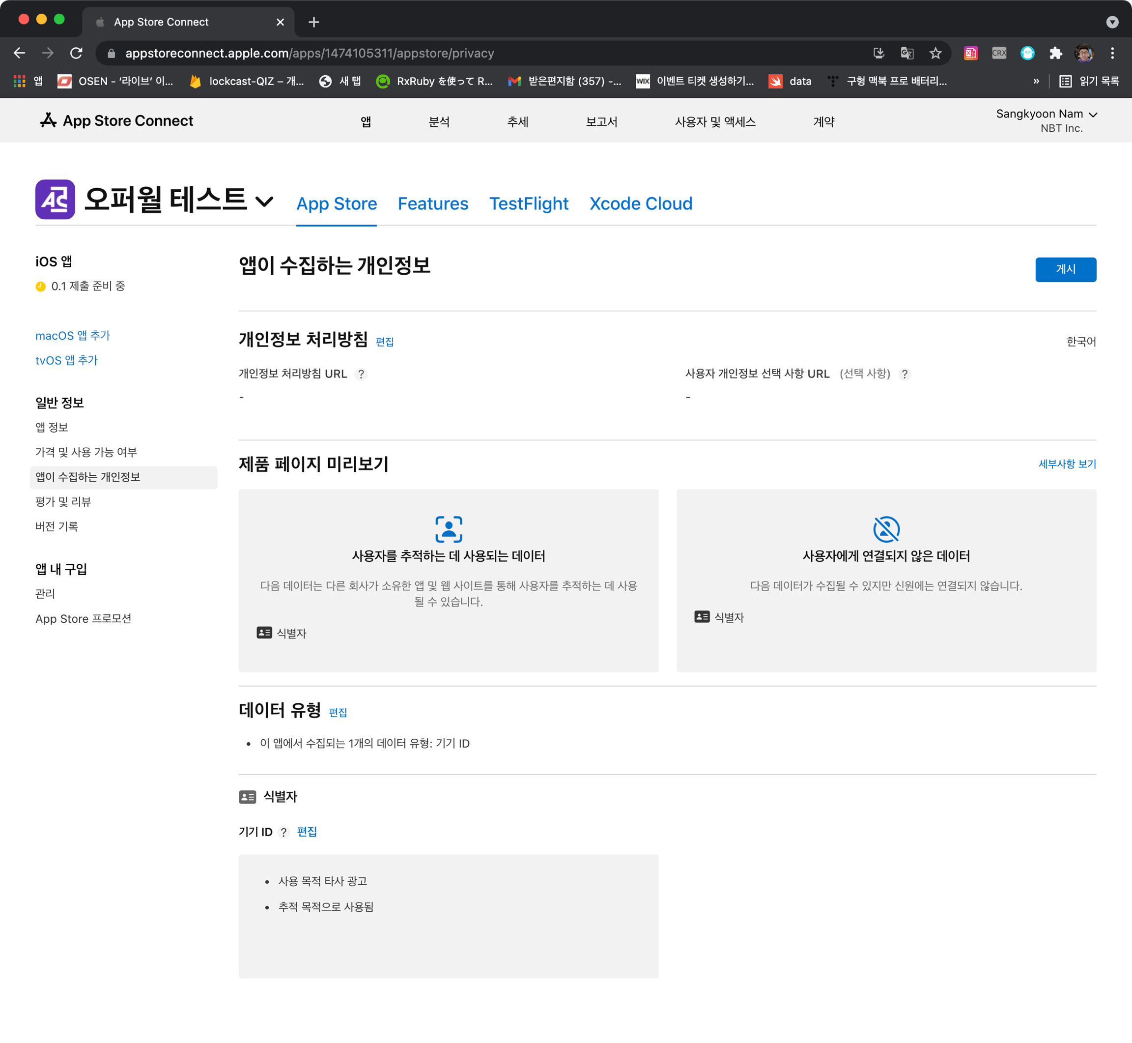 iOS 앱을 검수요청한 경우 아래와 같이 NSUserTrackingUsageDescription 추가하여 앱이 수집하는 개인정보를 수정합니다.
